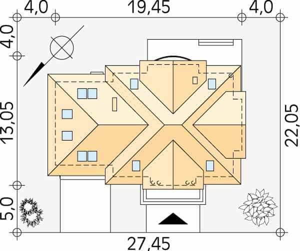 - Minimalne wymiary działki22.05 x 27.45m