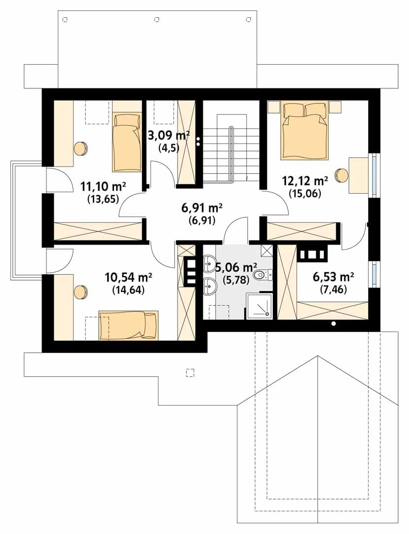 - rzuty poziome poszczególnych kondygnacji (parter, poddasze lub piętro),