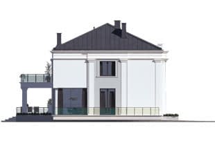 Amadeusz 2 to projekt domu w stylu nowoczesnej rezydencji. Elegancka i prestiżowa elewacja została ozdobiona licznymi gzymsami oraz pilastrami. Garaż umiejscowiono w piwnicy dostępnej za pomocą krętego zjazdu. Parter o otwartym charakterze cechuje się widokiem na taras oraz obszernym oknem narożnym. Kuchnia znajduje się w bardzo bliskiej odległości od kuchni. Na poddaszu zaprojektowano 4 wygodne pokoje, z czego jeden z dużą garderobą. Dodatkowo na tym piętrze znajdują się również w łazienki oraz WCKonstrukcja