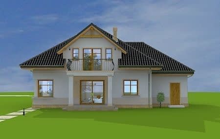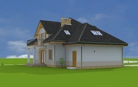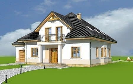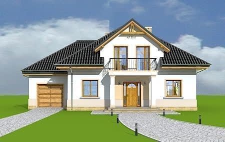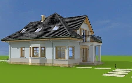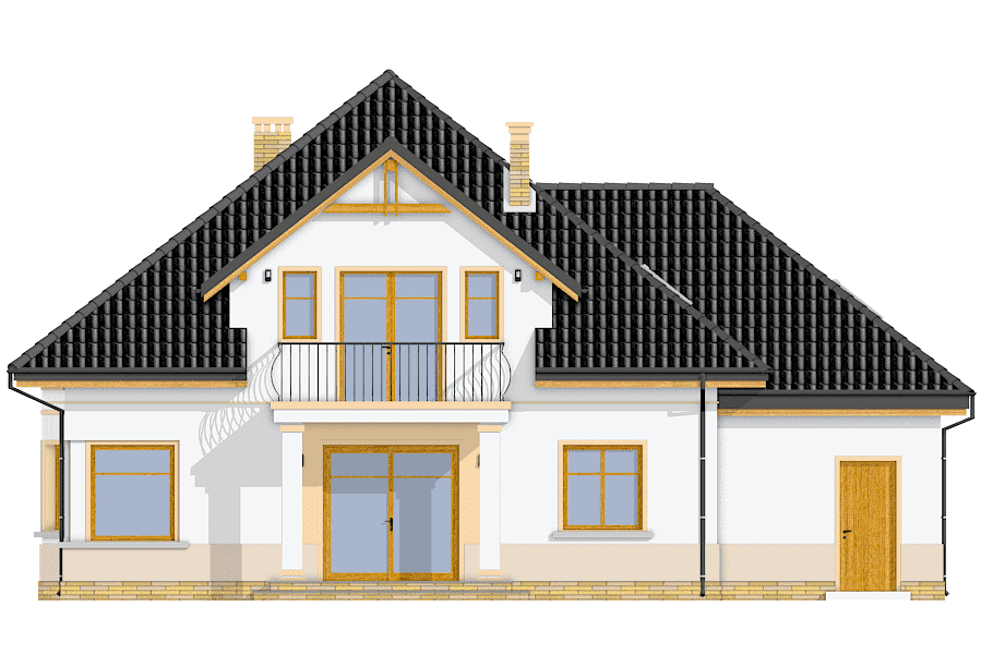 Projekt domu Amanda to budynek jednorodzinny dla cztero-sześcioosobowej rodziny. Amanda to z poddaszem użytkowym, przykryty czterospadowym dachem. Projekt domu Amanda jest podmiejską willą o nowoczesnej, ale spokojnej architekturze. Zwarta bryła budynku z dobudowanym garażem i dużym zadaszonym podcieniem z tyłu domu, została ciekawie ozdobiona klinkierowymi i drewnianymi okładzinami elewacji, oraz loggiami i podcieniem wejściowym. Masywny ozdobny komin kominka wewnętrznego i zewnętrznego, czy narożne okna - to dodatkowe ozdoby budynku. Przemyślana architektonicznie bryła tworzy spójną, spokojną kompozycyjnie całość. Na parterze zaprojektowano duży salon z jadalnią i holem, z częściowo otwartą kuchnią, oraz dodatkowy pokój - gabinet lub sypialnię gościnną. Na poddaszu znajdują się sypialnie, z odrębnym apartamentem rodziców, z własną łazienką, garderobą i balkonem z widokiem na ogród. W projekcie Amanda, przez szerokie przeszklenia na parterze zaplanowano wyjście z salonu do dużego podcienia i na taras ogrodowy. Dostępny jest wariant projektu na płycie fundamentowej oraz wersja odbicia lustrzanego projektu Amanda.