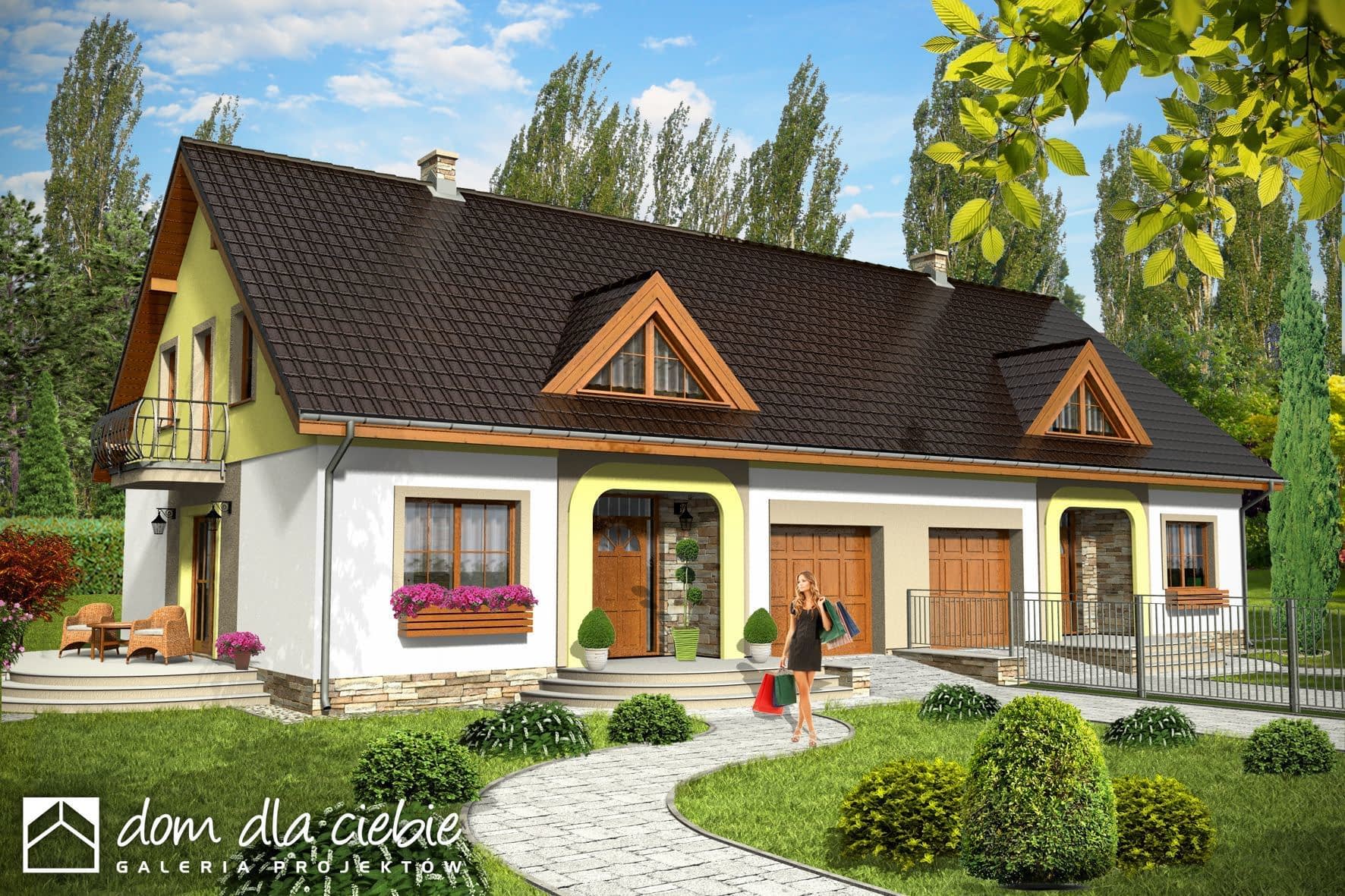 (Uwaga: projekty typu bliźniak oferujemy jako domy dwulokalowe, projekt można zamówić również w zabudowie bliźniaczej)Funkcjonalny, ekonomiczny, tradycyjny dom jednorodzinny z poddaszem użytkowym dla czteroosobowej rodziny. Budynek posiada prostą konstrukcję i zwartą bryłę a równocześnie klasyczny i urokliwy wygląd. Parter stanowią (oprócz wiatrołapu i łazienki): pokój, który można przeznaczyć na gabinet lub dodatkową sypialnię, wygodna kuchnia ze spiżarnią, oraz atrakcyjny salon, z którego wychodzi się na duży taras. Garaż włączony do bryły, dostępny jest z wiatrołapu a pom. gospodarcze z piecem C.O. znajduje się za garażem. Poddasze składa się z trzech sypialni oraz obszernej łazienki. Sypialnia rodziców posiada balkon, który równocześnie chroni przed opadami wyjście tarasowe na parterze.