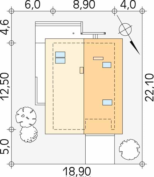- Minimalne wymiary działki22.1 x 18.9m