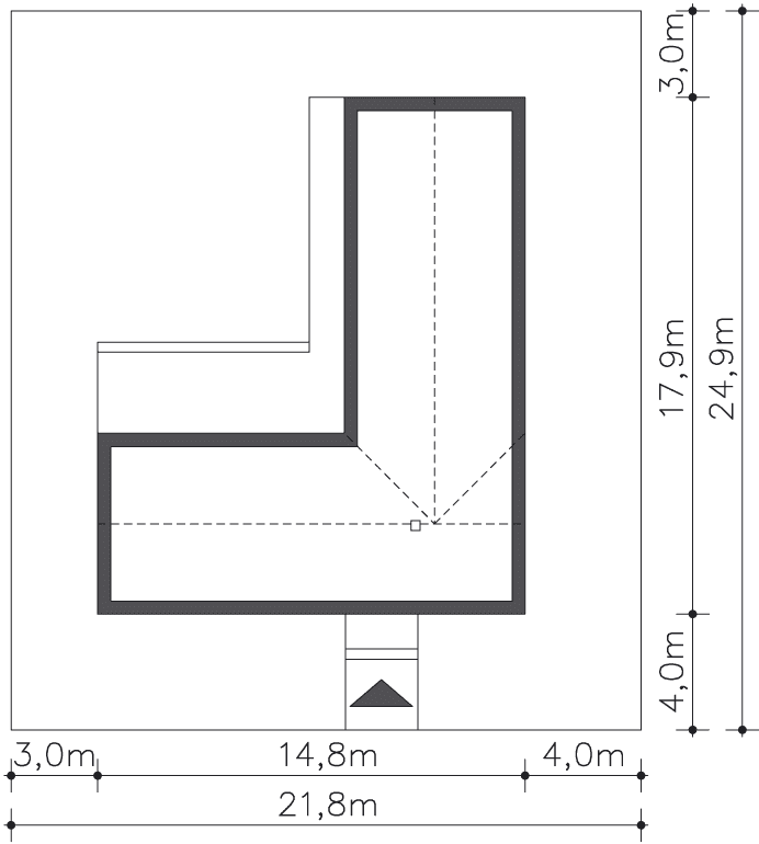 - Minimalne wymiary działki24.9 x 21.8m