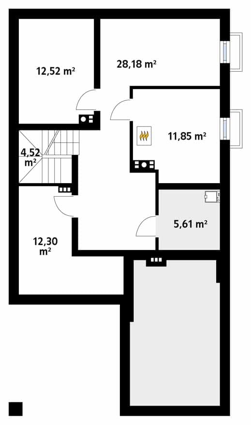 Amarylis 4 to jednorodzinny, podpiwniczony projekt domu z użytkowym poddaszem idealny na wąską działkę. Na parterze zaprojektowano część dzienną złożoną z salonu, kuchni ze spiżarnią oraz jadalni. Z salonu prowadzi wyjście na reprezentacyjny, zadaszony taras od strony ogrodu. Dodatkowo do dyspozycji mieszkańców znajduje się tam również gabinet oraz łazienka. Strefa nocna została wydzielona na poddaszu i składa się na nią: sypialnia gospodarzy z wydzieloną garderobą i łazienką, 3 dodatkowe sypialnie oraz rodzinna łazienka. Każda z sypialni posiada wyjście na taras zlokalizowane po obu stronach budynku. W projekcie została uwzględniona również piwnica, w której zlokalizowano kotłownię na paliwo stałe oraz liczne pomieszczenia gospodarcze.Konstrukcja