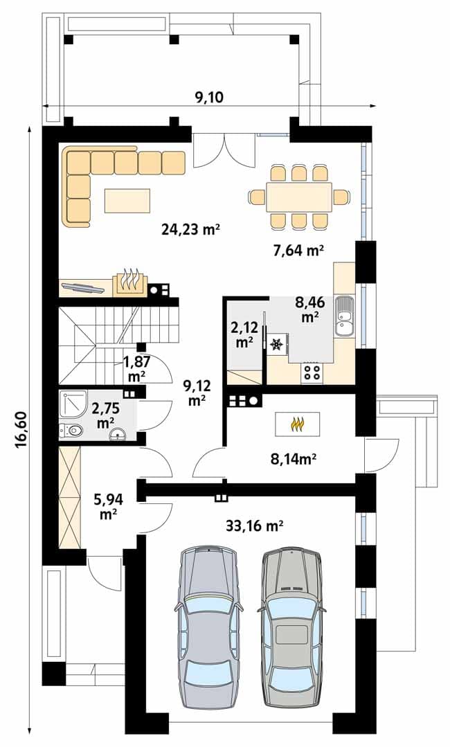 - Szerokość domu9.1 m