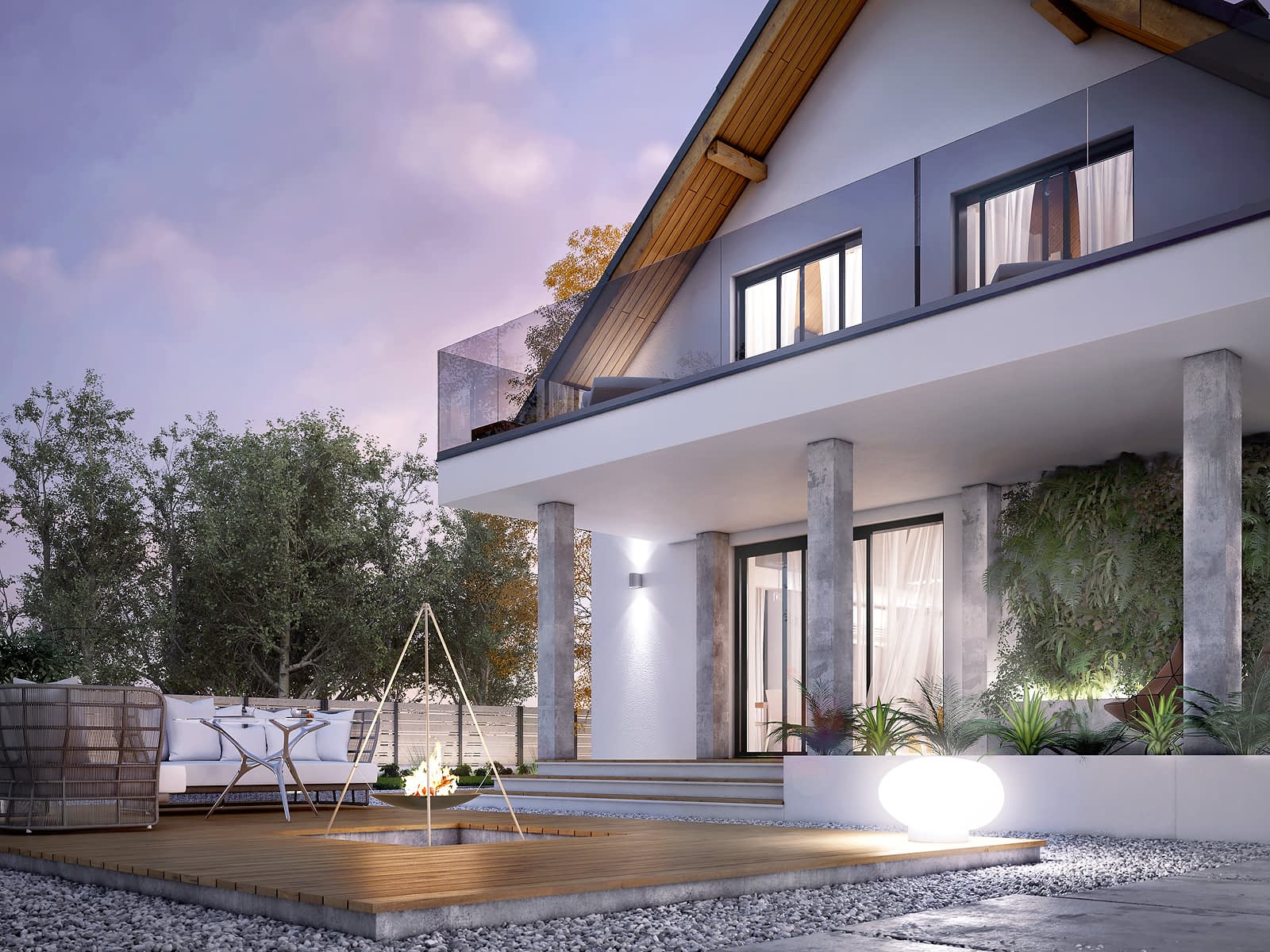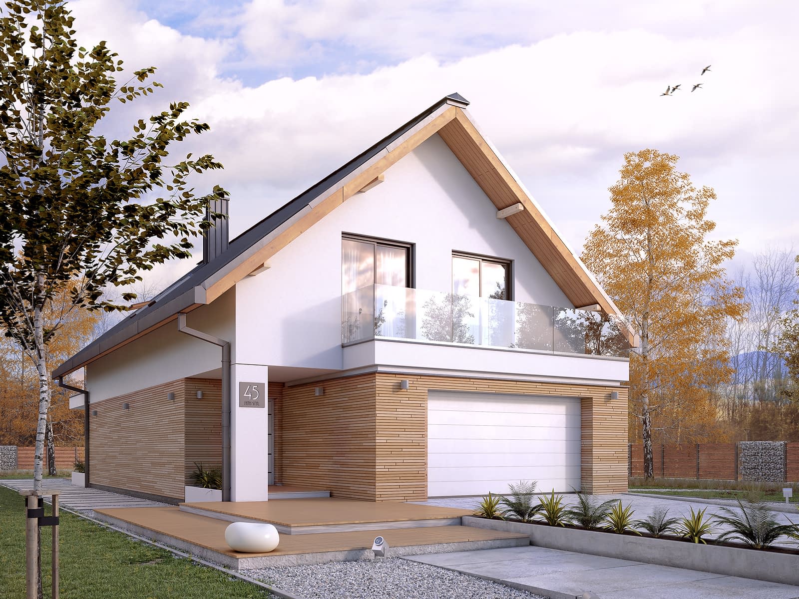 Amarylis 5 to dom idealny dla 5-osobowej rodziny. W projekcie wyraźnie wyodrębniono strefę nocną i dzienną. Na parterze zaprojektowano strefę dzienną, która składa się z salonu, jadalni oraz kuchni wraz z przylegającą spiżarnią. Na poddaszu zaprojektowane zostały cztery sypialnie oraz rodzinna łazienka. Głowna sypialnia gospodarzy posiada oddzielną garderobę i prywatną łazienkę. Każda z sypialni posiada wyjście na jeden z dwóch tarasów, zlokalizowanych po obu stronach budynku. W projekcie znajduje się również dwustanowiskowy garaż oraz kotłownia z oddzielnym zewnętrznym wejściem.Konstrukcja