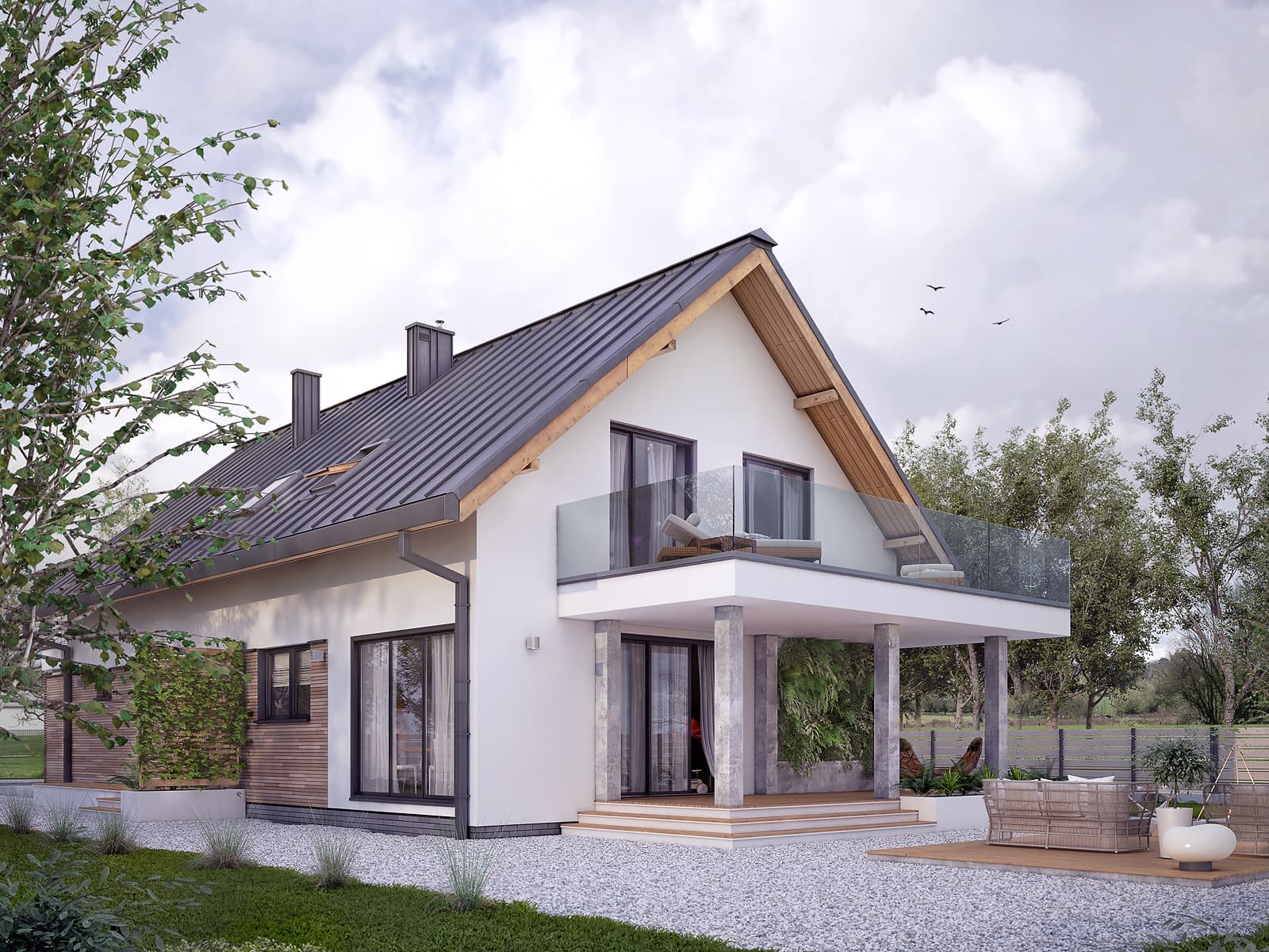 - rzuty poziome poszczególnych kondygnacji (parter, poddasze lub piętro),