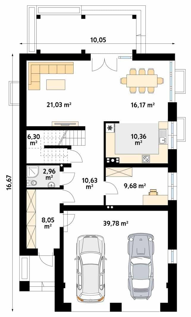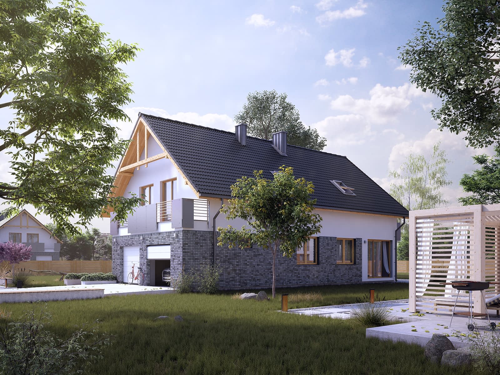 Amarylis 7 to projekt domu z użytkowym poddaszem przykryty dwuspadowym dachem. Prosta, zwarta bryła z wkomponowanym dwustanowiskowym garażem wpływa na wysoką energooszczędność domu. Układ funkcjonalny podzielono na przestronną strefę dzienną, nocną i część gospodarczą. Strefa dzienna to salon z jadalnią oraz otwarta kuchnia. Dodatkowo na parterze zaprojektowano pokój oraz łazienkę. Funkcjonalnym rozwiązaniem jest także zaplanowane przejście z garażu poprzez wiatrołap do strefy dziennej. Do strefy gospodarczej można zaliczyć piwnicę, w której są pomieszczenia gospodarcze oraz kotłownia. Strefa nocna została wydzielona na poddaszu. Znajduje się tu apartament gospodarzy z prywatną garderobą i łazienką. Dodatkowo na poddaszu zaprojektowano cztery pokoje oraz ogólnodostępną łazienkę.Konstrukcja