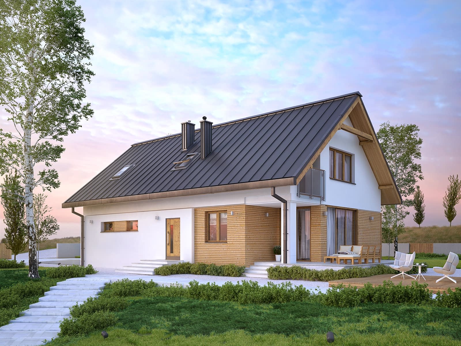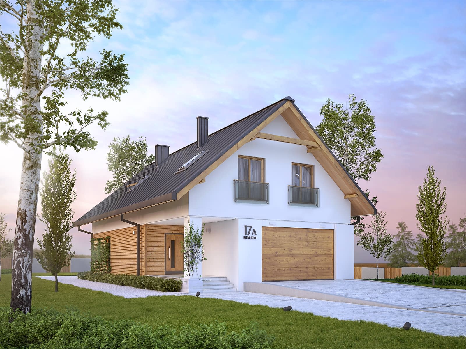 Parterowy dom z użytkowym poddaszem przeznaczony dla 4-osobowej rodziny. Prosta, klasyczna bryła w połączeniu z nowoczesnymi elewacjami tworzy przyjemny klimat budynku. Dwustanowiskowy garaż.Konstrukcja