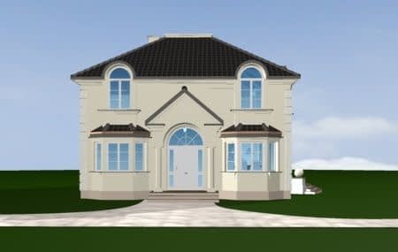 Projekt domu Ambasador 3 wariant B jest wersją wariantową projektu Ambasador 3 z garażem od frontu w miejscu gabnetu i garderoby. Projekt domu o klasycznej architekturze, z ciekawymi detalami elewacji. Dom pasuje zarówno na działkę z ogrodem usytuowanym z tyłu jak i z boku. Wnętrze budynku podzielono na cześć dzienną na parterze i sypialnie na poddaszu.