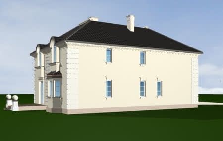 Projekt domu Ambasador 3 to duży dom jednorodzinny dla 4-6 osób. Projekt domu o klasycznej architekturze, z ciekawymi detalami elewacji. Dom pasuje zarówno na działkę z ogrodem usytuowanym z tyłu jak i z boku. Wnętrze budynku podzielono na cześć dzienną na parterze i sypialnie na poddaszu. Zapraszamy do zapoznania się z pełną ofertą pracowni MG Projekt: dostępna jest wersja podstawowa projekt domu Ambasador, wersja bez garażu projekt domu Ambasador 2 oraz odbicie lustrzane.