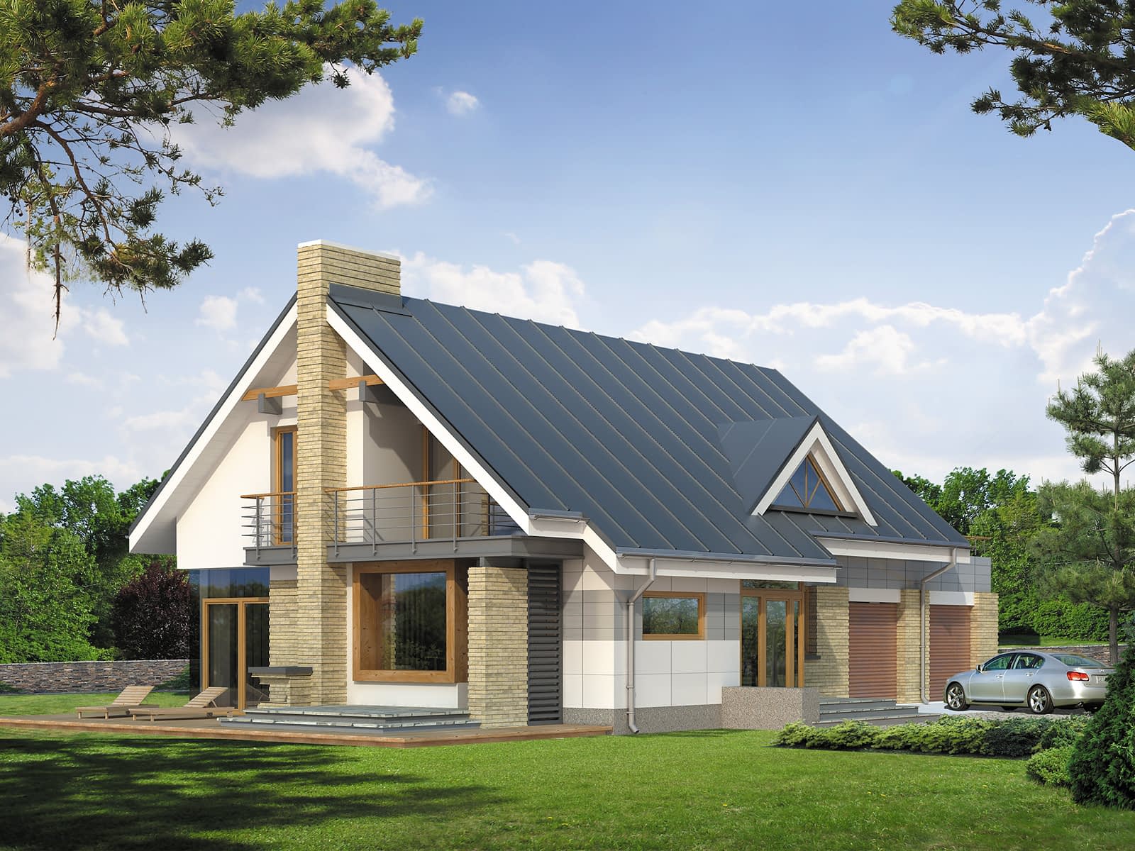 Dom mieszkalny, jednorodzinny, przeznaczony dla 3 – 4-osobowej rodziny. W architekturze budynku połączono elementy nowoczesne i klasyczne. Projekt Amber 2 to powiększona o jeszcze jedno stanowisko garażowe wersja projektu Amber.Konstrukcja