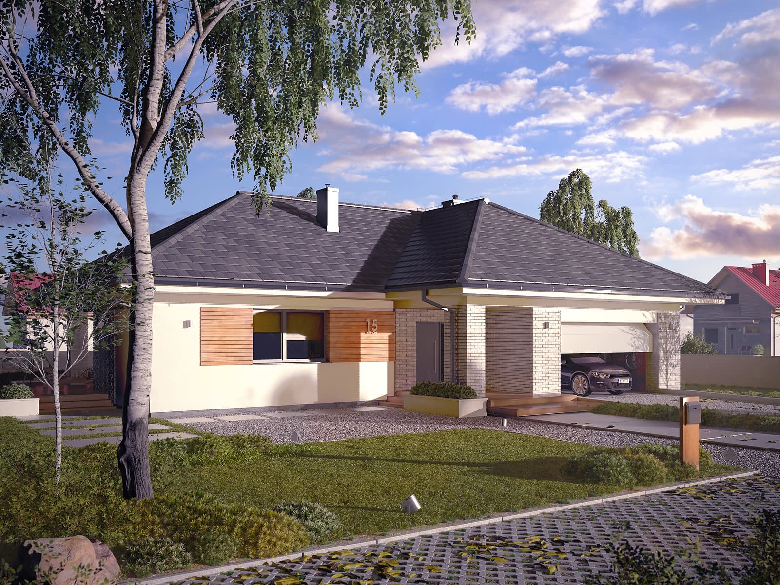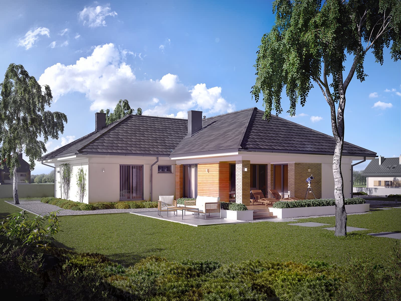 Projekt Ambrozja 11 powstał z myślą o zapewnieniu komfortowych warunków mieszkalnych dla 4-osobowej rodziny. Czytelne wydzielenie strefy dziennej i nocnej zapewnia domownikom poczucie prywatności. W części sypialnej zaproponowano rozwiązane, które staje się standardem w coraz większej liczbie domów - apartament gospodarzy, czyli sypialnia z oddzielną garderobą oraz łazienką. Przestronna część dzienna umożliwia stworzenie zapraszającej, reprezentacyjnej przestrzeni - przyjaznej domownikom oraz ich gościom. Otwarta kuchnia, będąca częścią tej przestrzeni, została wyposażona w wyspę, mogącą służyć również jako bar. Dodatkowym atutem kuchni jest spiżarnia. Pomieszczenie przy hallu wejściowym może być wykorzystane jako garderoba lub pomieszczenie porządkowe. Kameralnym akcentem budynku jest częściowo osłonięty, zadaszony taras.Konstrukcja