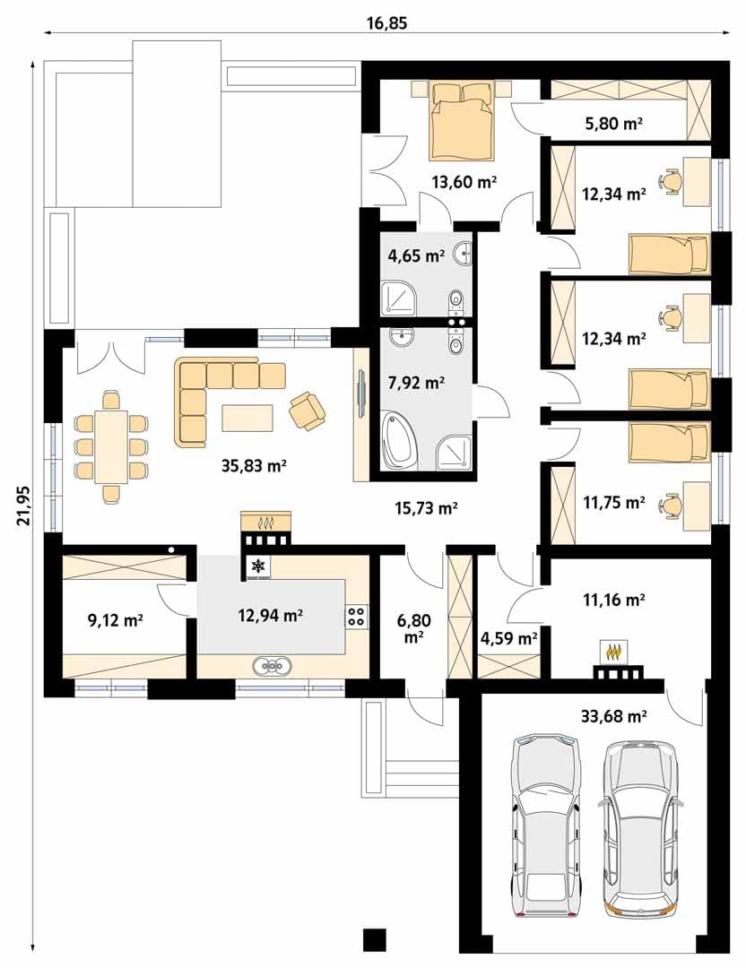 - Szerokość domu16.85 m