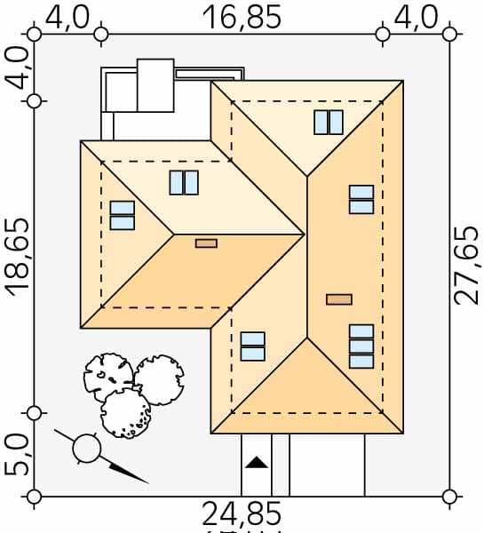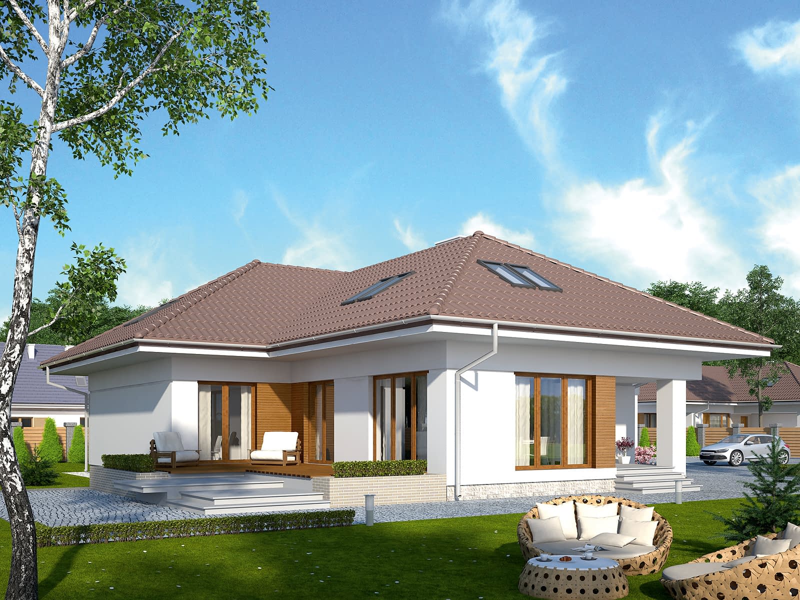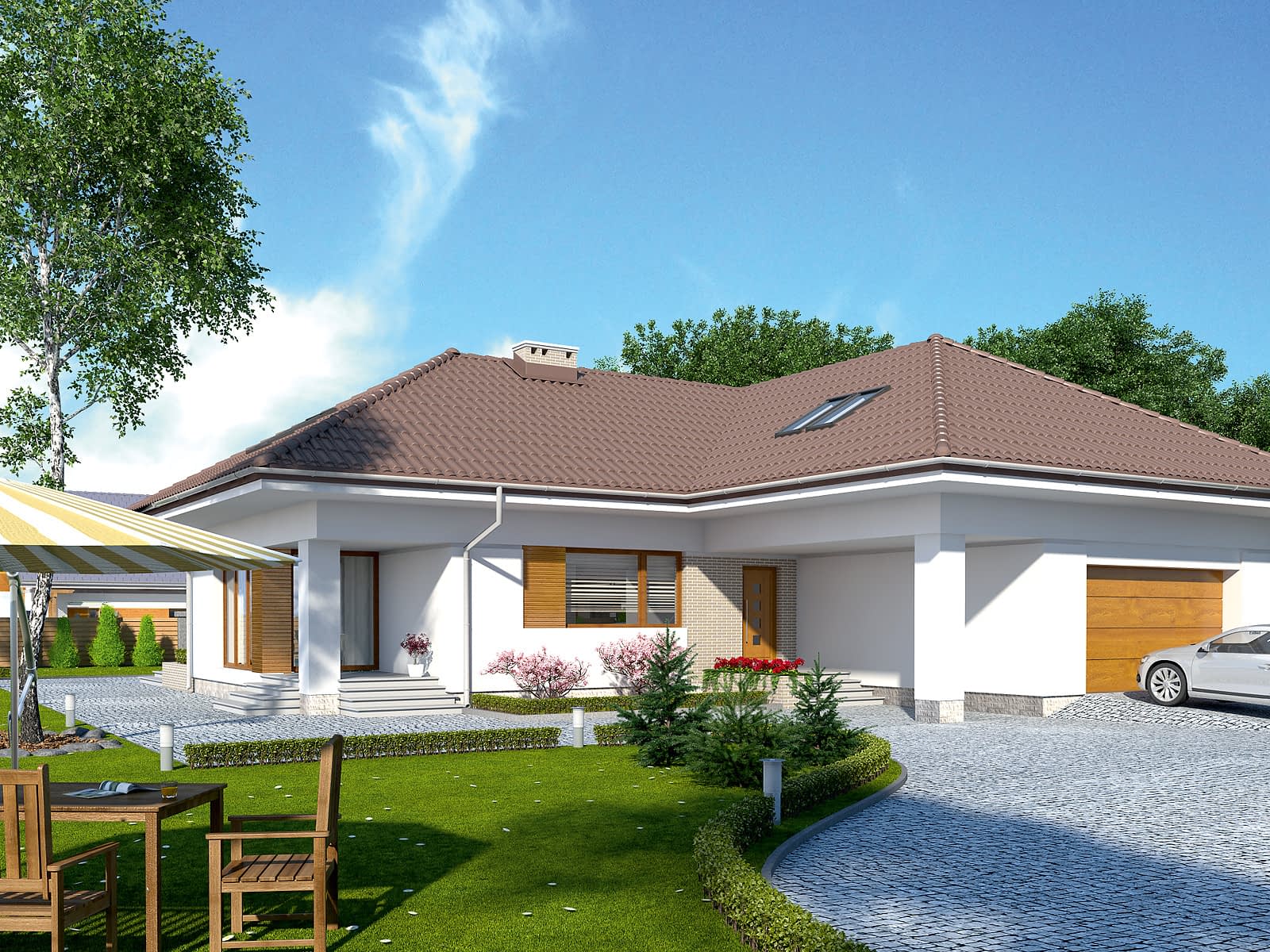 Jednorodzinny budynek mieszkalny, parterowy z użytkowym poddaszem. Na parterze przewidziano wyraźnie oddzielone części: dzienną, nocną oraz gospodarczą. Przestronne poddasze, na którym zaproponowano trzy sypialnie, może być aranżowane w dowolny sposób. W domu zaprojektowano dwustanowiskowy garaż oraz kotłownię na każdy rodzaj paliwa.Konstrukcja