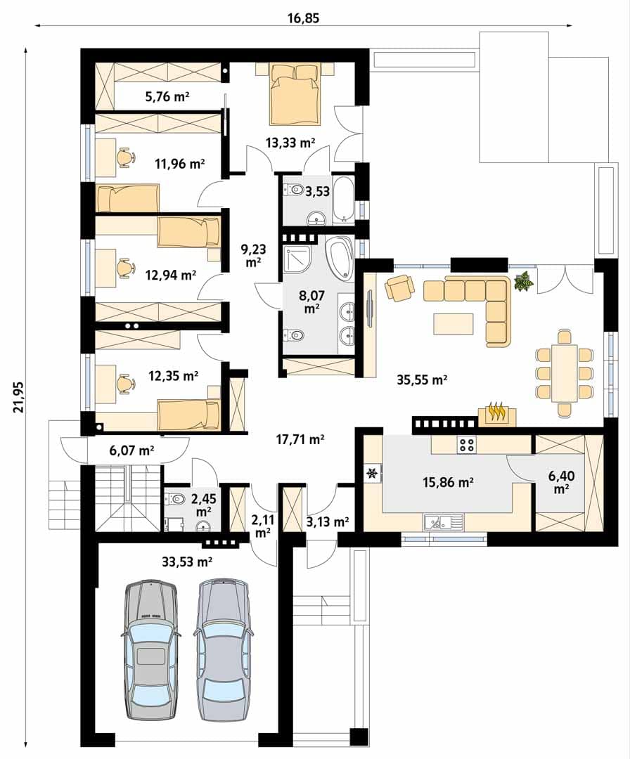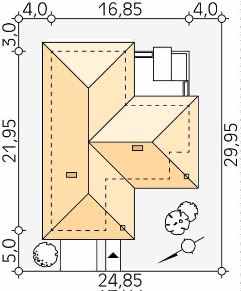 - Szerokość domu16.85 m