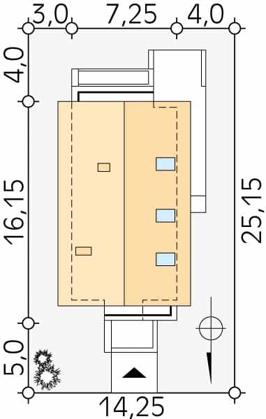 - Minimalne wymiary działki25.15 x 14.25m