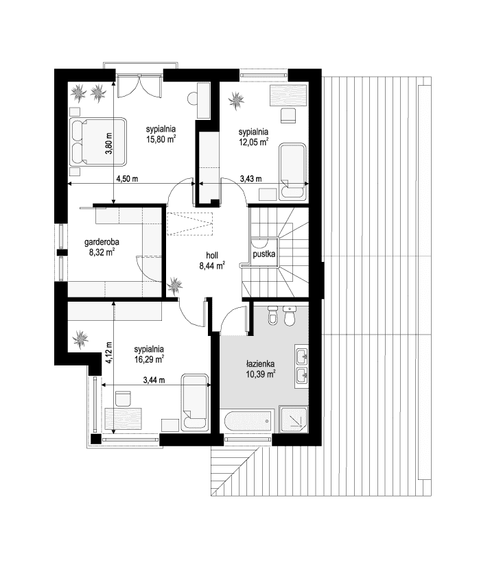 - Zmianę funkcji, ilości i usytuowania poszczególnych pomieszczeń na dowolnej kondygnacji w projekcie.