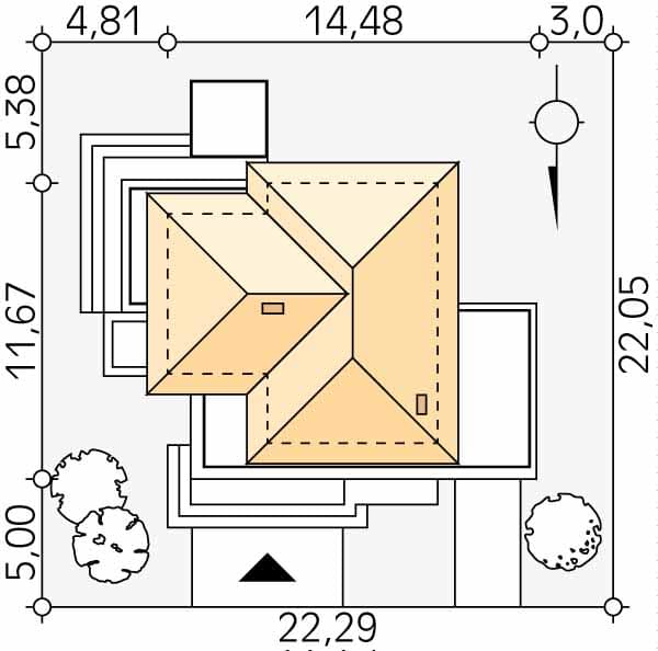 - Minimalne wymiary działki20.05 x 22.29m