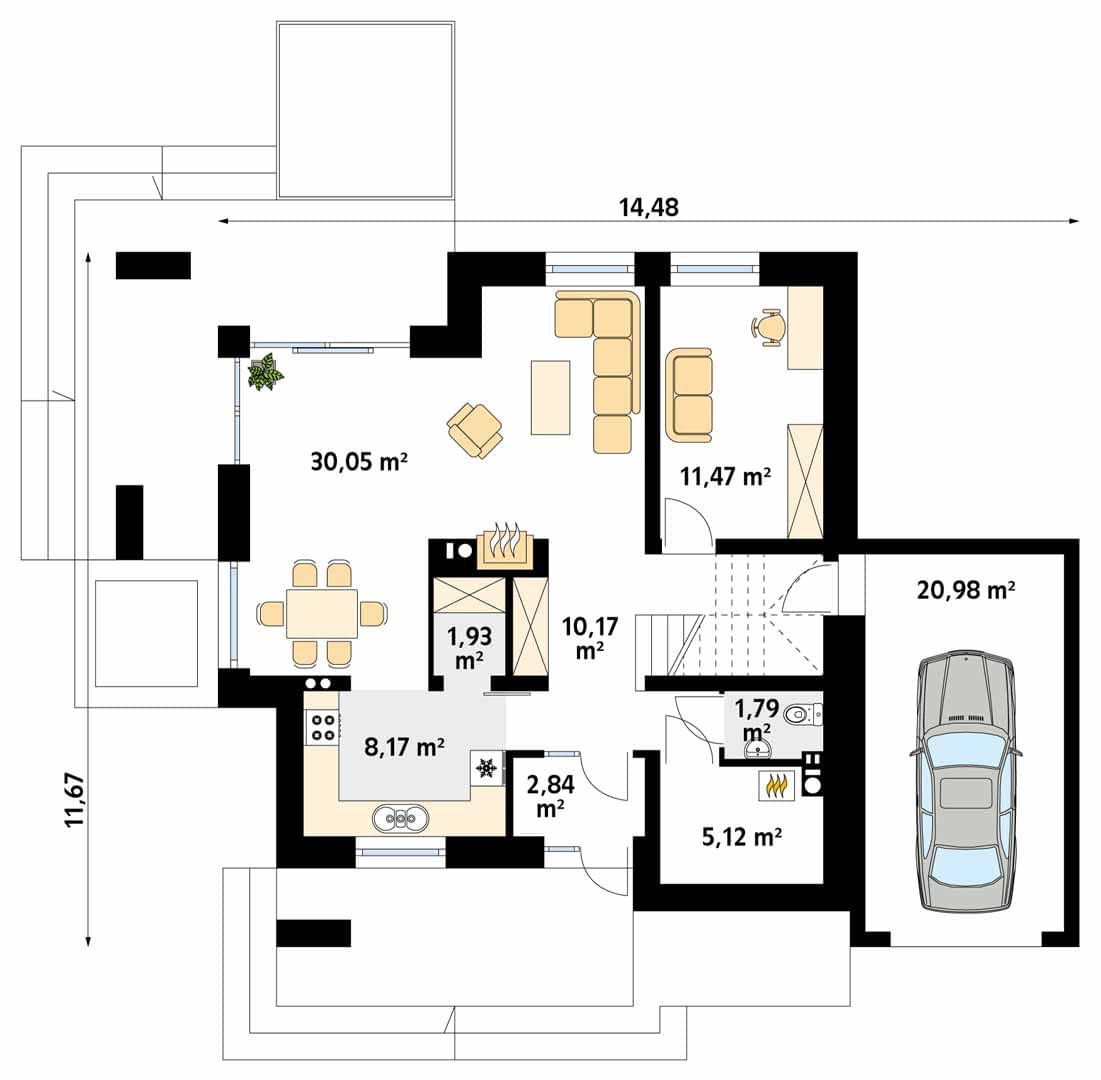 - Szerokość domu14.48 m