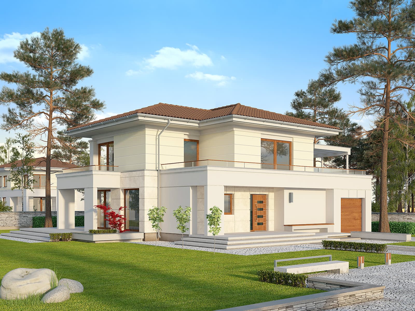 Andante to reprezentacyjny, klasyczny, a jednocześnie niewielki dom stanowiący alternatywę projektową dla osób poszukujących rozwiązań wychodzących poza „utarte schematy”. Gzymsy oraz zestawienie okładziny kamiennej i tynku na elewacji dodatkowo uatrakcyjniają kompozycję budynku. Na parterze zaprojektowano przestrzeń dzienną łączącą kuchnię, jadalnię i pokój dzienny. Atutem projektu jest dodatkowy pokój na parterze. Na piętrze znajdują się trzy sypialnie (z dwóch można wyjść na obszerny taras), duża łazienka oraz garderoba. Dwie pełne kondygnacje umożliwiają łatwą aranżacje pomieszczeń, także na piętrze.Konstrukcja