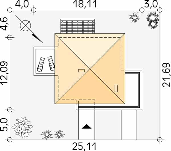 - Minimalne wymiary działki21.69 x 25.11m