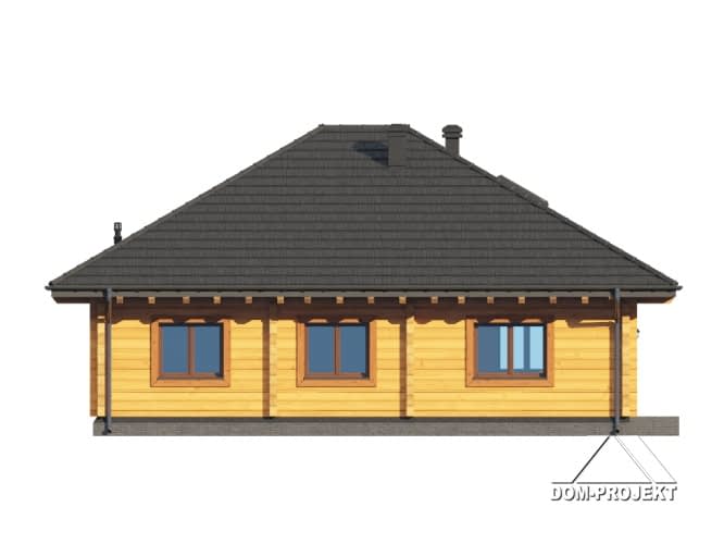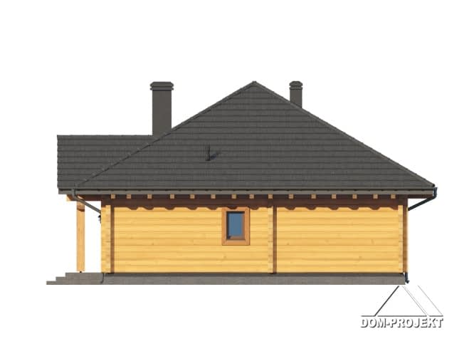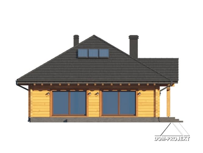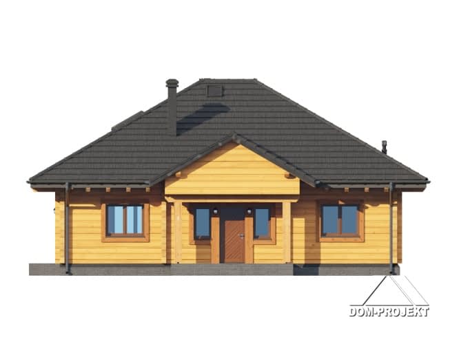 Dom z bali drewnianych. Parterowy. Salon z kuchnią, kominkiem oraz wyjściem na taras. Trzy pokoje, łazienka, komunikacja, kotłownia, wiatrołap. Schody na poddasze z wiatrołapu. Na poddaszu strych.Rzuty