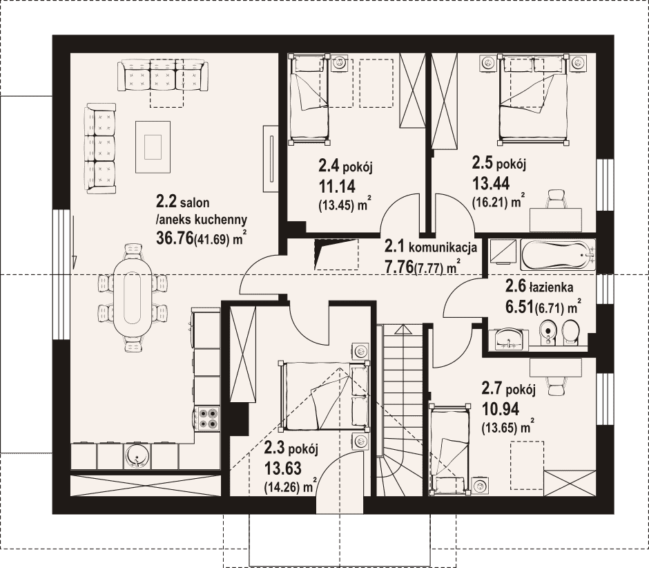 - 2.2 - salon+aneks kuchenny36.76 m²