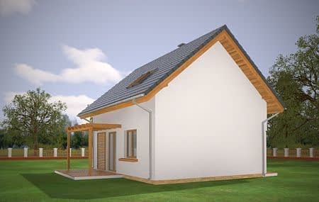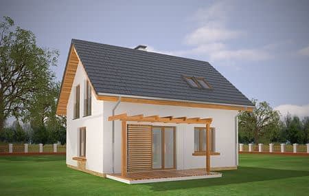 Projekt domu Ania jest odpowiedzią na potrzebę wygodnego mieszkania dla trzy-czteroosobowej rodziny. Kto nie wolałby mieszkać w takiej perełce zamiast w trzech pokojach w bloku? Projekt domu Ania to sympatyczny domek dla trzy-czteroosobowej rodziny, parterowy z użytkowym poddaszem. Jego bezpretensjonalna architektura z łatwością wkomponuje się w każde otoczenie. Prosta nowoczesna forma architektoniczna zbudowana na planie prostokąta, z dwuspadowym symetrycznym dachem, daje poczucie porządku i harmonii. Dzięki nieskomplikowanej bryle, konstrukcja domu jest łatwa i tania w budowie. Nowoczesne materiały wykończeniowe i okładziny ścian elewacji - urozmaicają front z podcieniem wejściowym. Elewację ogrodową ozdabia drewniana pergola nad tarasem dostępnym z salonu. Wnętrze domu jak na niewielką powierzchnię użytkową jest bardzo pojemne. Mieści się w nim - na parterze : część dzienna z salonem, kuchnią, holem z wygodnymi schodami, oraz dodatkowy pokój ( sypialnia lub gabinet ), łazienka i kotłownia ( gazowa, która może też być z piecem na paliwo stałe). Natomiast na poddaszu mieszczą się trzy wygodne sypialnie z łazienką. Tym samym, jak na domek o powierzchni użytkowej 82 m2, Ania jest bardzo funkcjonalnie zaprojektowana. To nie koniec zalet projektu :-). Dom jest bardzo dobrze ocieplony, a nowoczesne instalacje i technologie sprawiają, że jest energooszczędny i tani w przyszłej eksploatacji. Koszt budowy jest bardzo rozsądny, ponieważ projekt domu Ania ma prostą konstrukcję właściwy stosunek kubatury do ilości przegród zewnętrznych. Jest to doskonały dom dla oszczędnych, świadomych Inwestorów, którzy planują swój przyszły dom na miarę możliwości i rzeczywistych potrzeb. Projekt Ania występuje w wersji bez garażu, ale bardzo łatwo można doprojektować jedno lub dwustanowiskowy garaż do elewacji bocznej. Pracownia posiada wersję odbicia lustrzanego projektu.