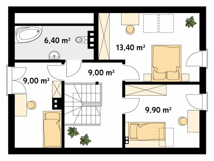 - rzuty poziome poszczególnych kondygnacji (parter, poddasze lub piętro),