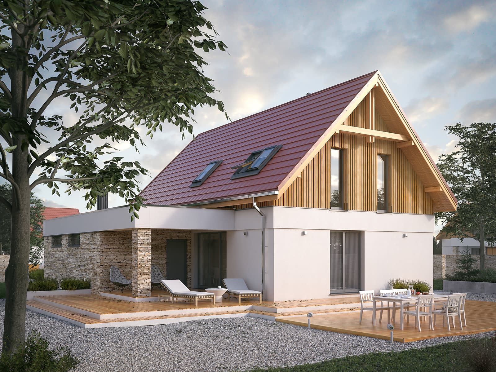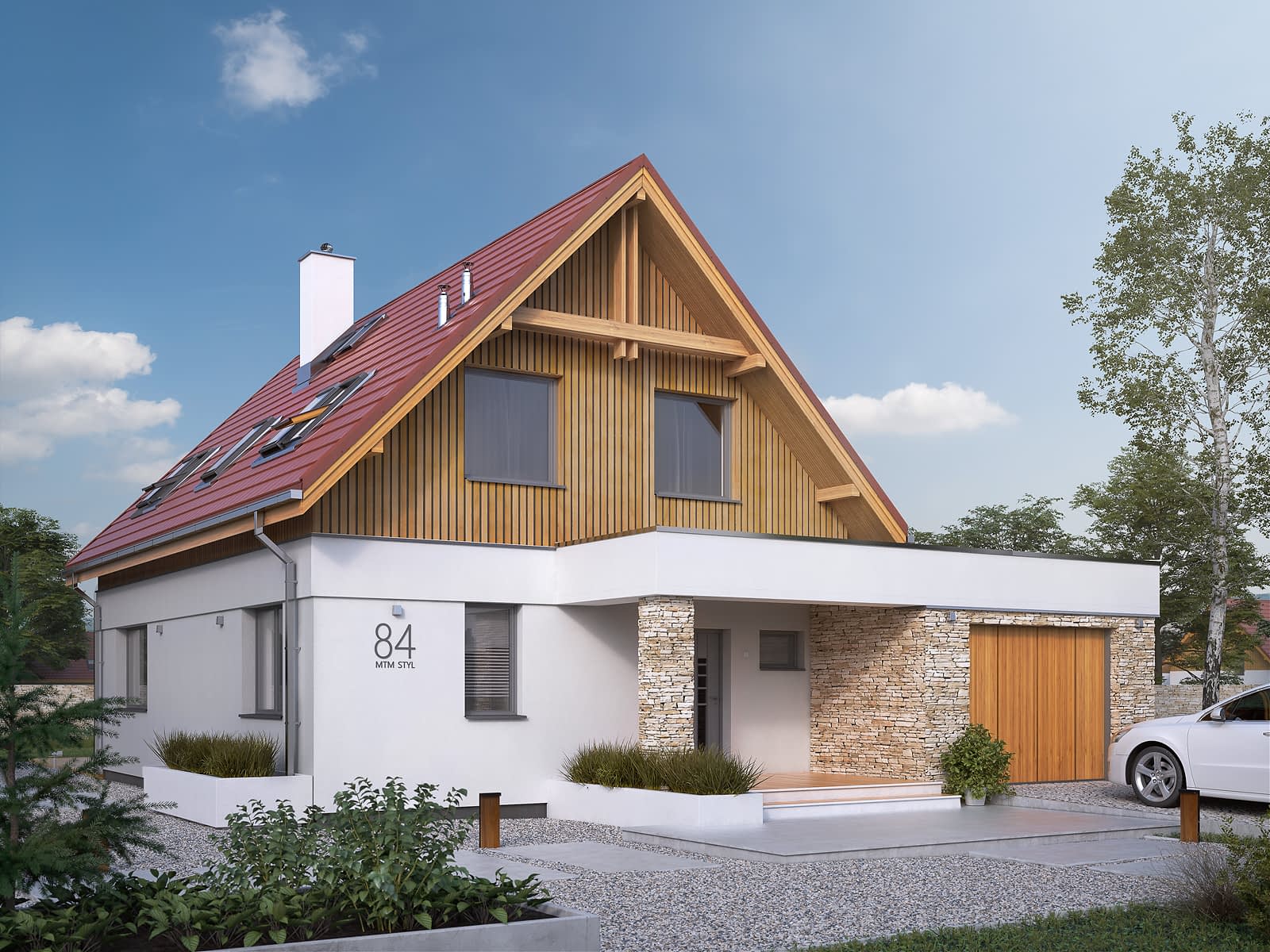Dom przeznaczony jest dla 4 osobowej rodziny. Projekt powstał w oparciu o pierwszą wersję Antary. Bryła budynku zyskała tradycyjne elementy w postaci dachu z okapami oraz elewacji częściowo wykończonej drewnianą szalówką. Aby podkreślić charakter domu elewacje części garażowej wykończona została kamieniem. Niewątpliwym atutem domu jest duża otwarta przestrzeń w części dziennej dająca duże możliwości aranżacyjne wnętrza. Spędzanie wolnego czasu w letnie nawet deszczowe dni umili duży zadaszony taras. Dodatkowym aspektem podkreślającym wygodę użytkowania domu jest podręczny schowek pod schodami na parterze oraz wydzielona pralnia i garderoba na poddaszu.Konstrukcja