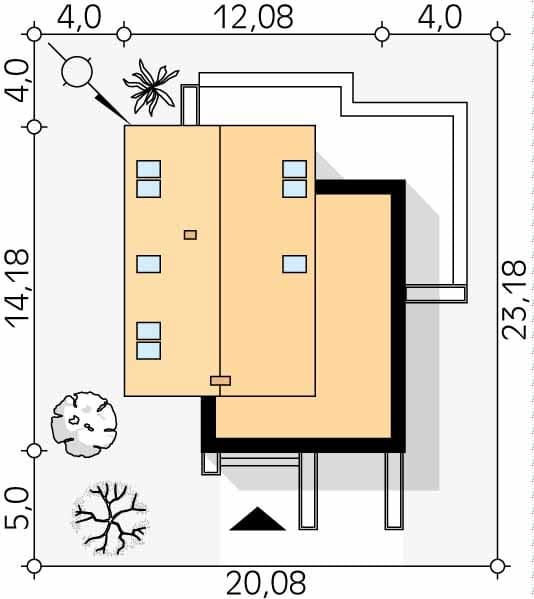 - Minimalne wymiary działki23.18 x 20.08m