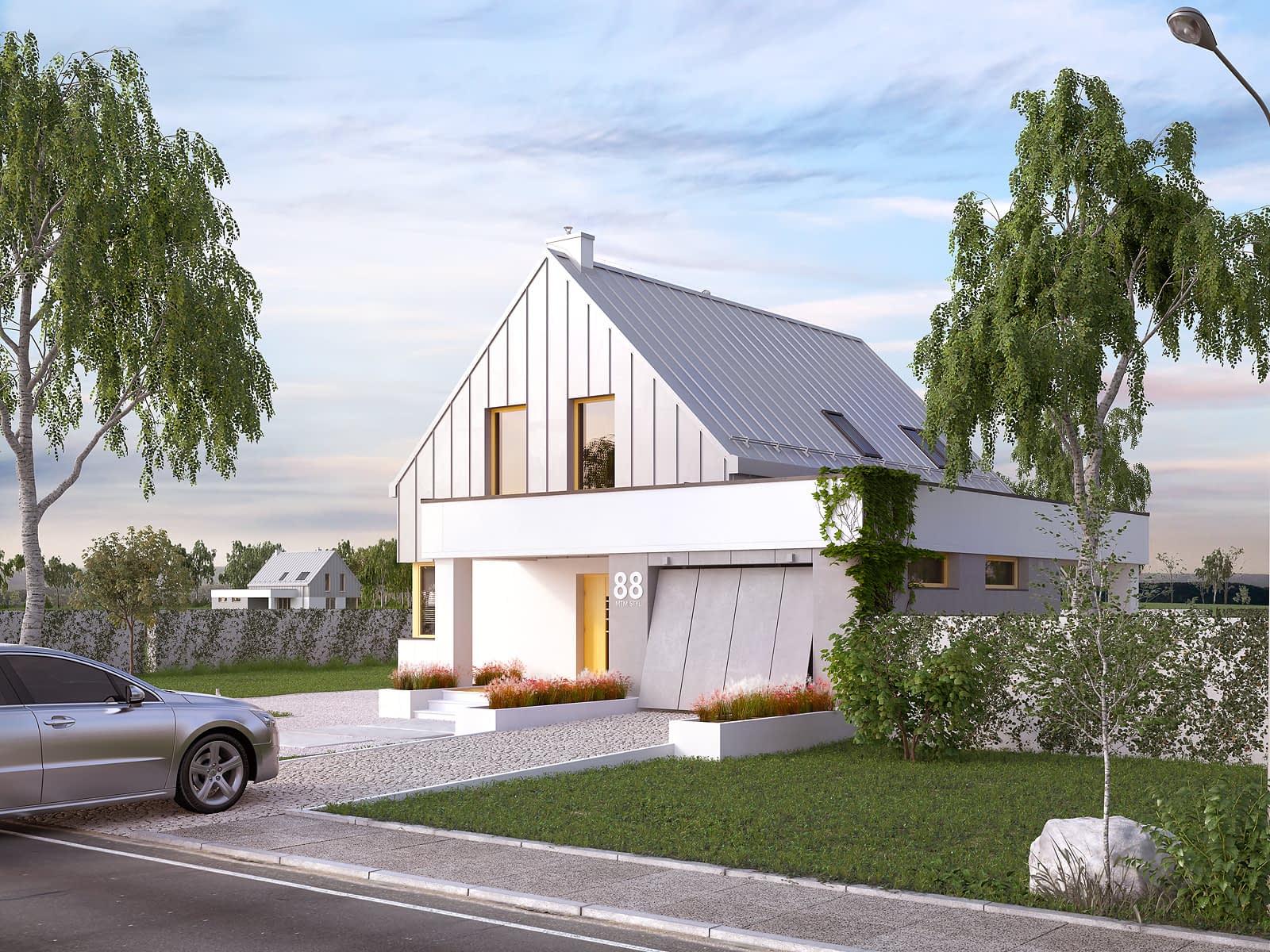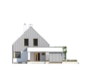 Dom został zaprojektowany dla 4 osobowej rodzinie. Myślą przewodnią podczas procesu tworzenia była prostota oraz nowoczesność ze szczyptą tradycji, która finalnie miała się złożyć na niebanalną formę przeznaczoną dla osób lubiących wyróżniać się z tłumu. Wygodę użytkowania części dziennej umożliwia otwarta przestrzeń w salonie i jadalni. Dodatkowym atutem projektu jest duży i zadaszony taras oraz wydzielona pralnia i garderoba na poddaszu.Konstrukcja