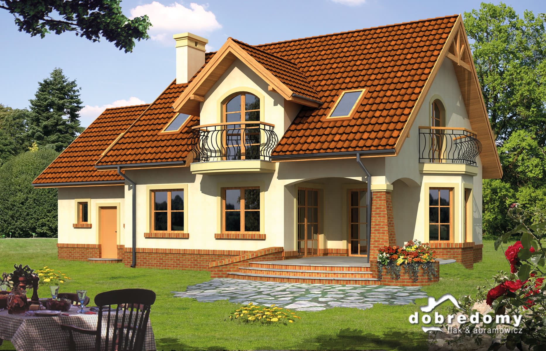 Elewacje pokryte tynkiem strukturalnym w systemie ociepleń Termo Organika oraz okładziną klinkierową. W projekcie zastosowano okna dachowe marki FAKRO. Pokrycie dachu - dachówka ceramiczna lub cementowa CREATON.