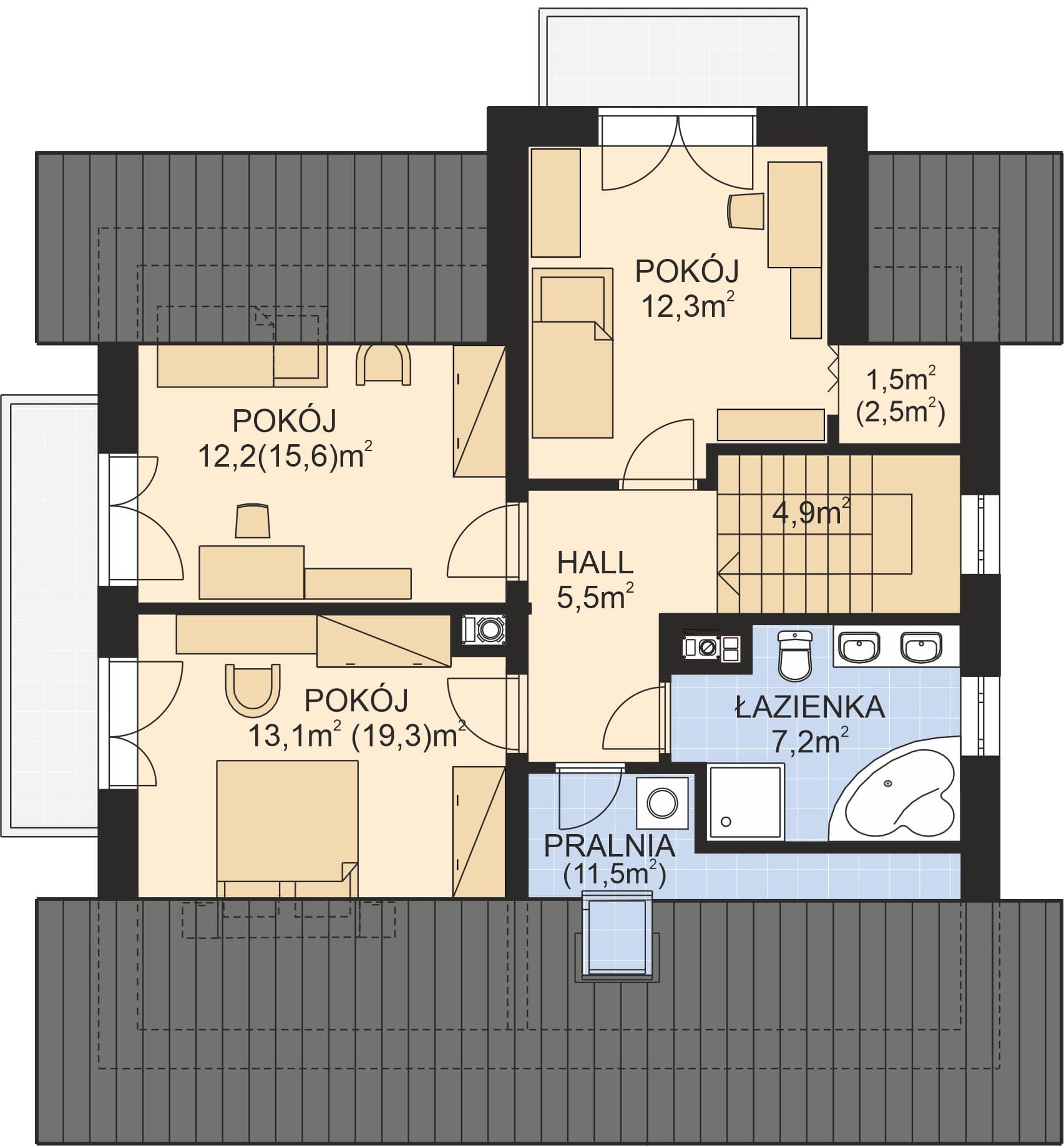 - KondygnacjeParterowy, z poddaszem, z piwnicą