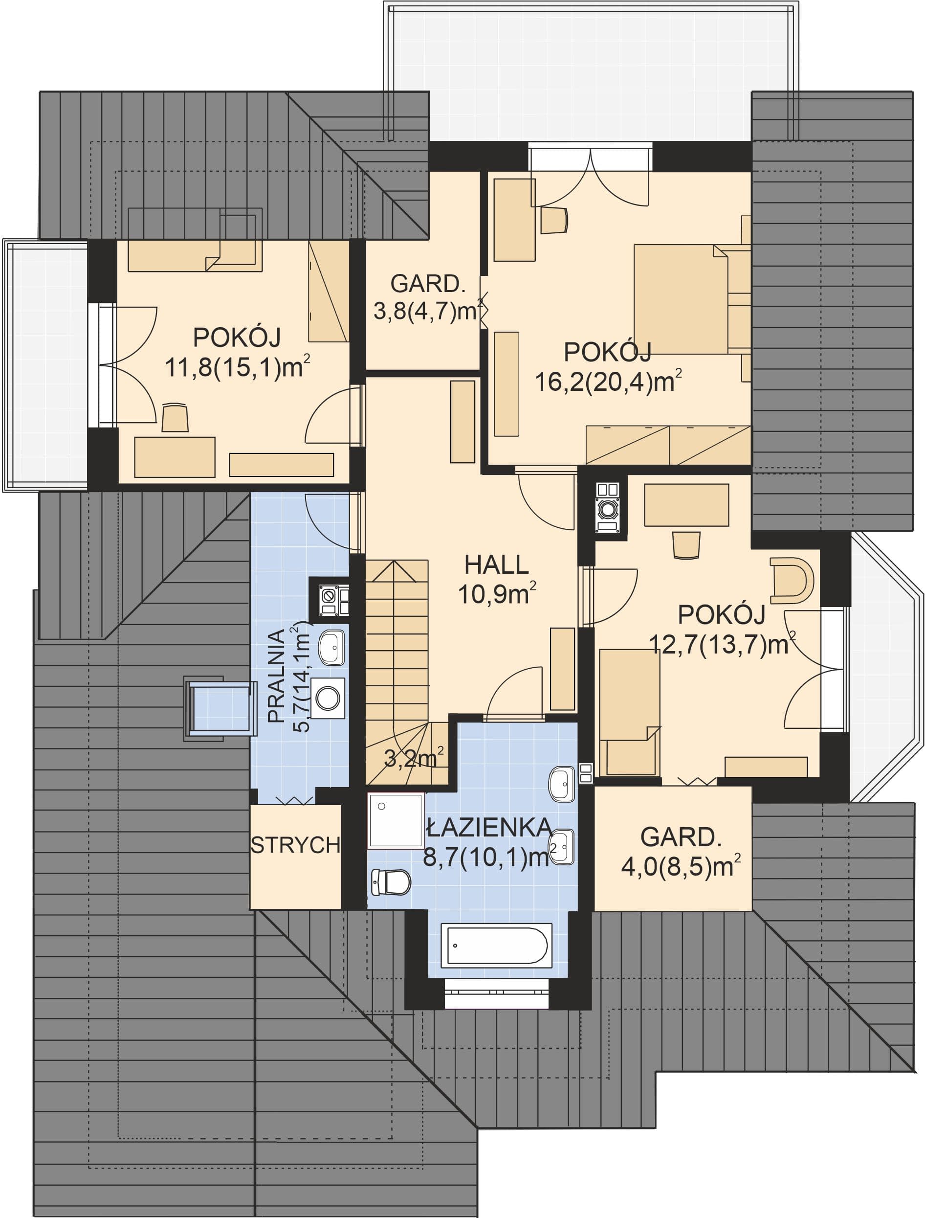 - Rodzaj dachuWielospadowy