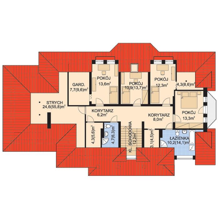 - KondygnacjeParterowy, z poddaszem