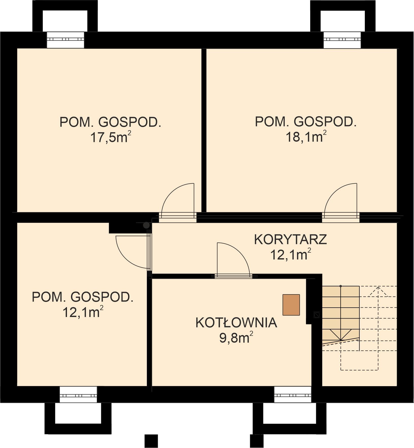 - KondygnacjeParterowy, z poddaszem, z piwnicą