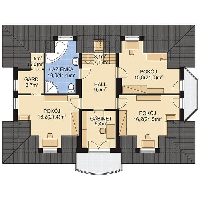 - KondygnacjeParterowy, z poddaszem, z piwnicą