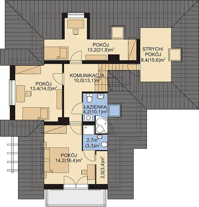 - KondygnacjeParterowy, z poddaszem
