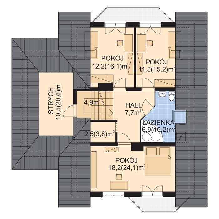 - KondygnacjeParterowy, z poddaszem