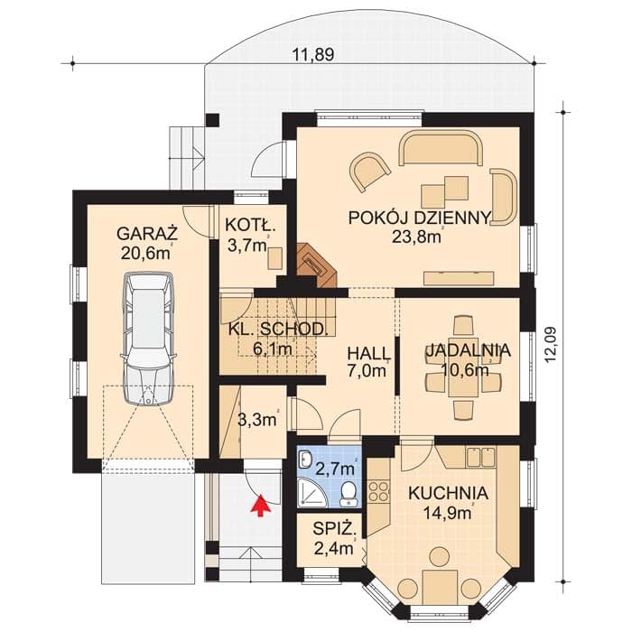 - Minimalne wymiary działki21.1 x 19.9m