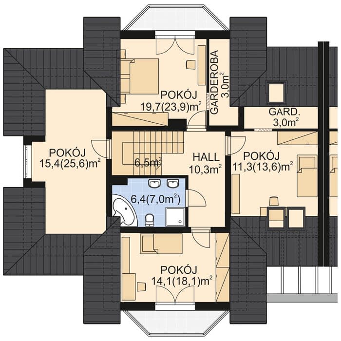 - Rodzaj dachuWielospadowy