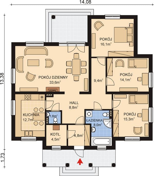 - Minimalne wymiary działki23.1 x 22.1m
