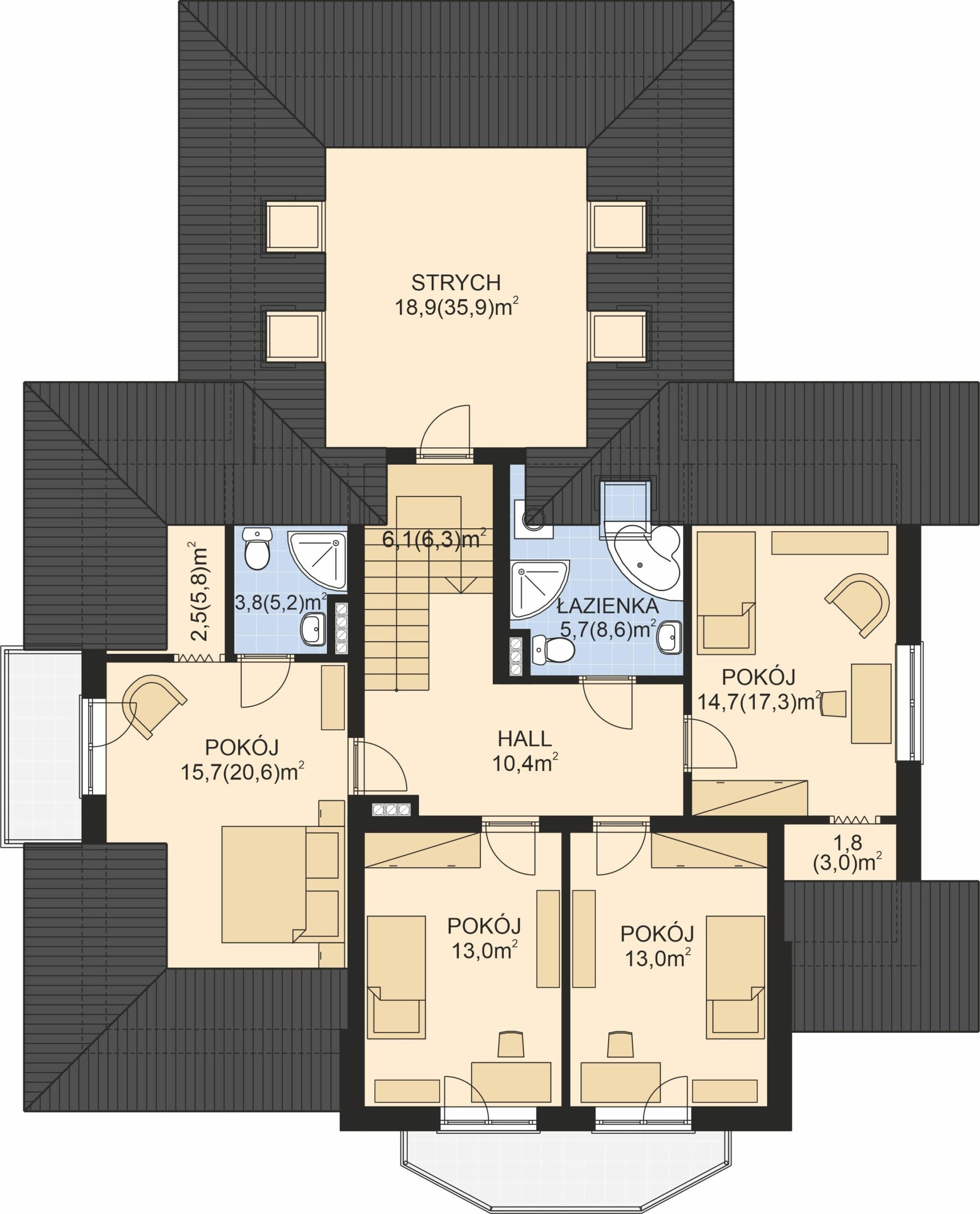 - Rodzaj dachuWielospadowy