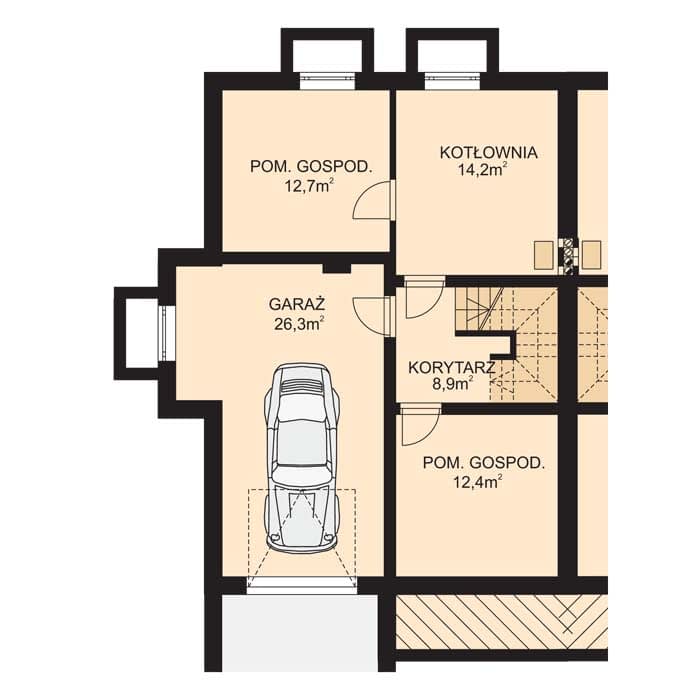 - KondygnacjeParterowy, z poddaszem, z piwnicą
