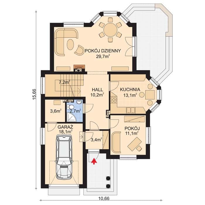 - KondygnacjeParterowy, z poddaszem