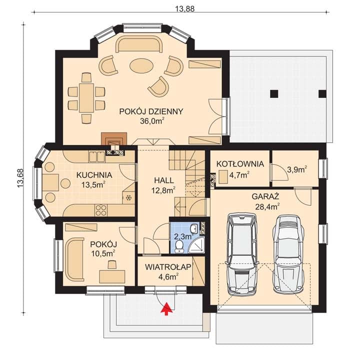 - KondygnacjeParterowy, z poddaszem