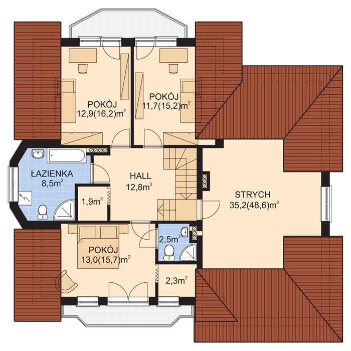 - Rodzaj dachuWielospadowy