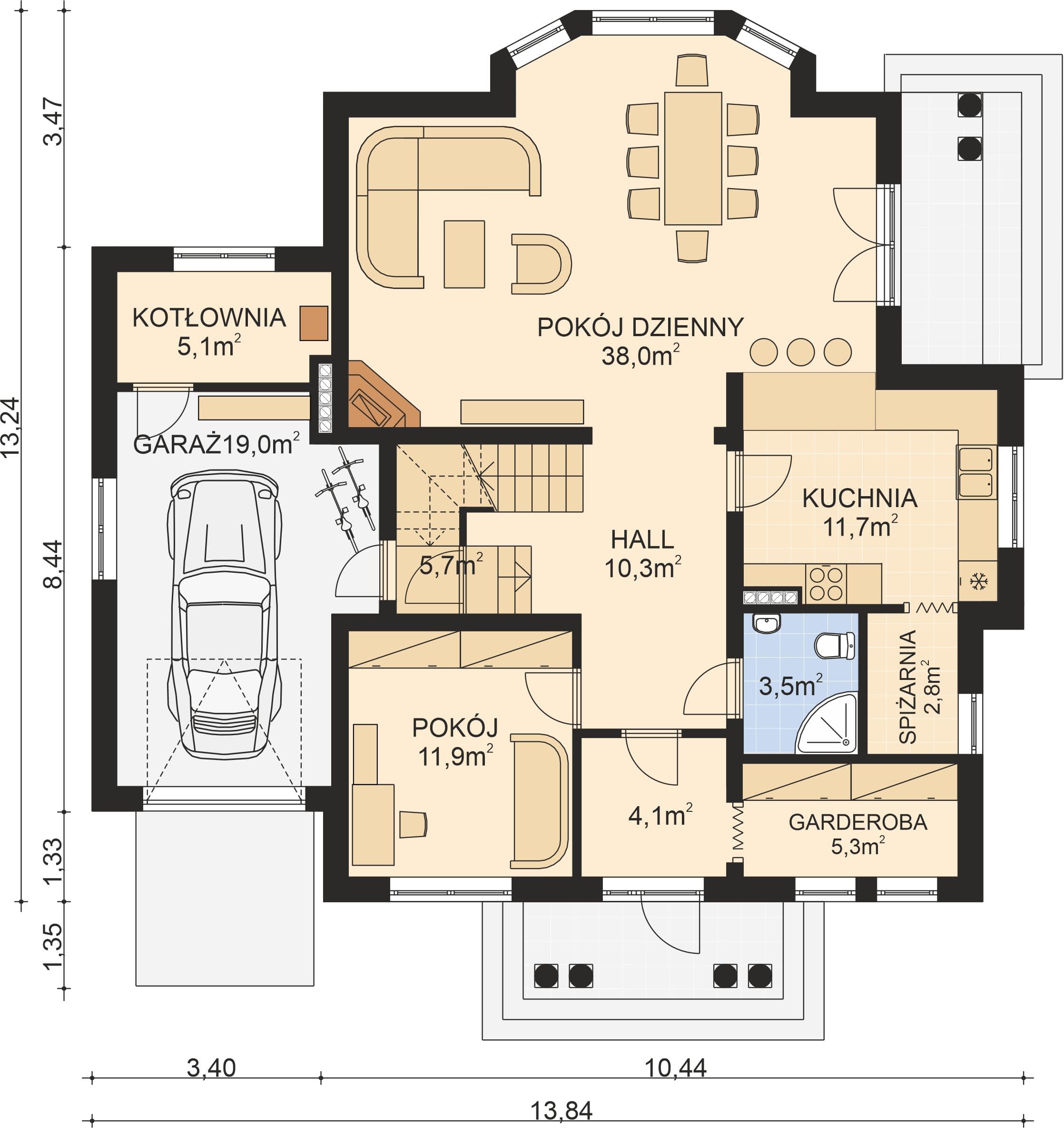 - KondygnacjeParterowy, z poddaszem